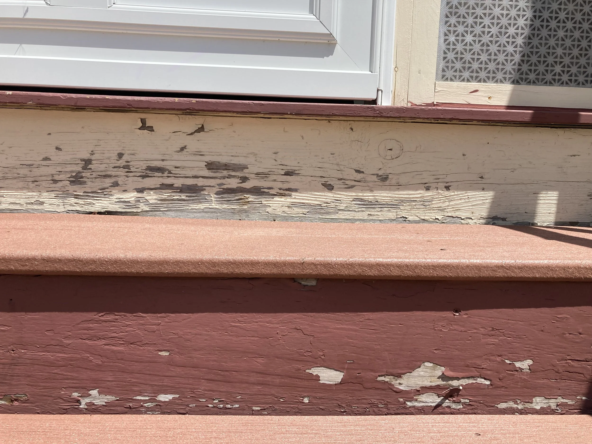 The second set of photos is a front porch. In less than three hours, PWJ scraped the chipping paint, sanded the edges, and reapplied a fresh coat. With the proper painting methods, there was almost no cleanup and the front steps had maximum curb appeal.