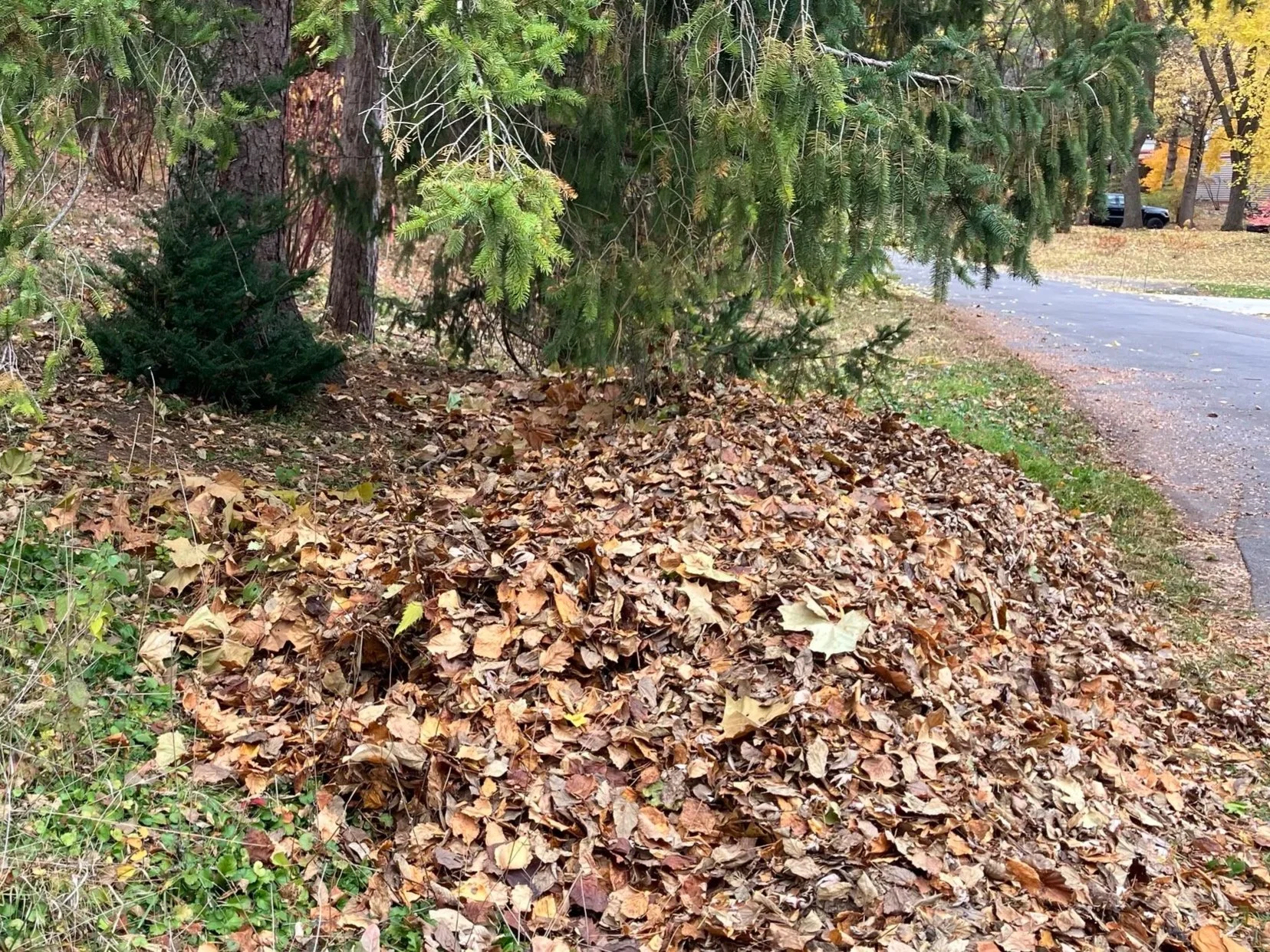 Leaves! One of my three-years-in-a-row clients continues to enjoy her yard, but not the aerobic tasks. It’s a joy to see the result of my previous effective pruning and clearing in her yard!